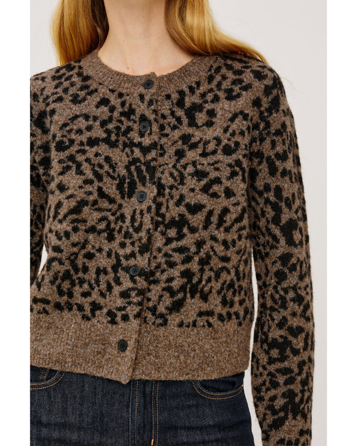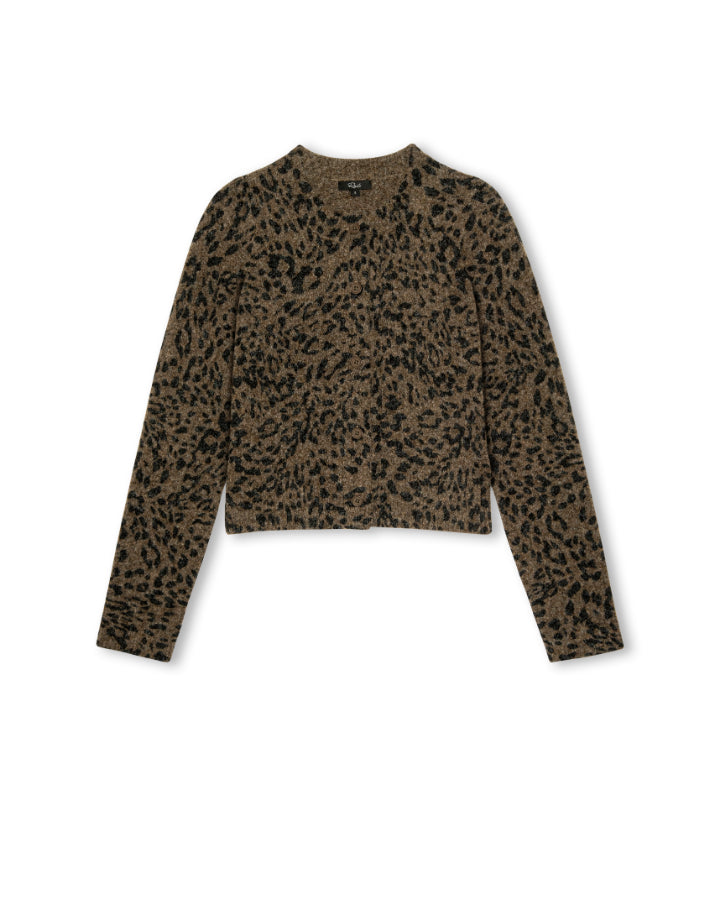 Rails luxurious cashmere blend animal print cropped cardigan with solid contrast ribbed trim and button front. It's cute enough to wear on its own or add dimension by layering. Size S - Length 19.5".