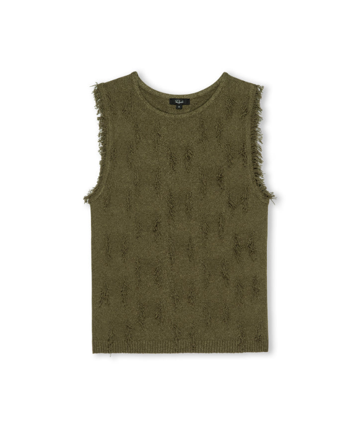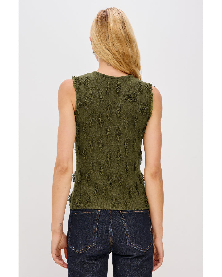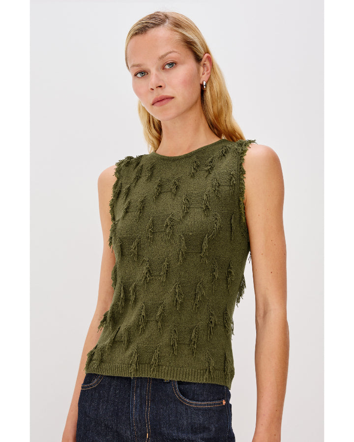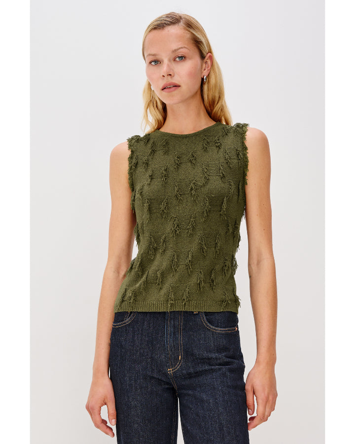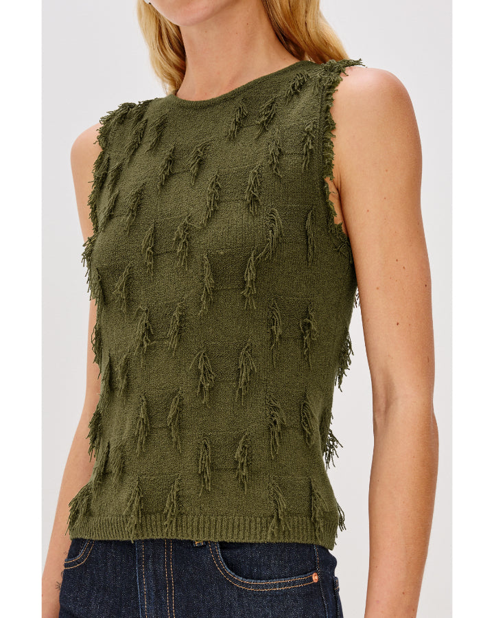 Rails fitted soft silk blend tank top with a round neck and textured with allover long fringes. Size S - Length 21".