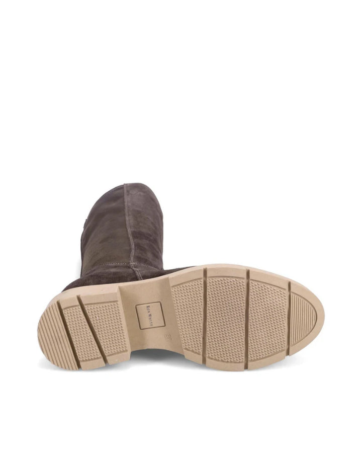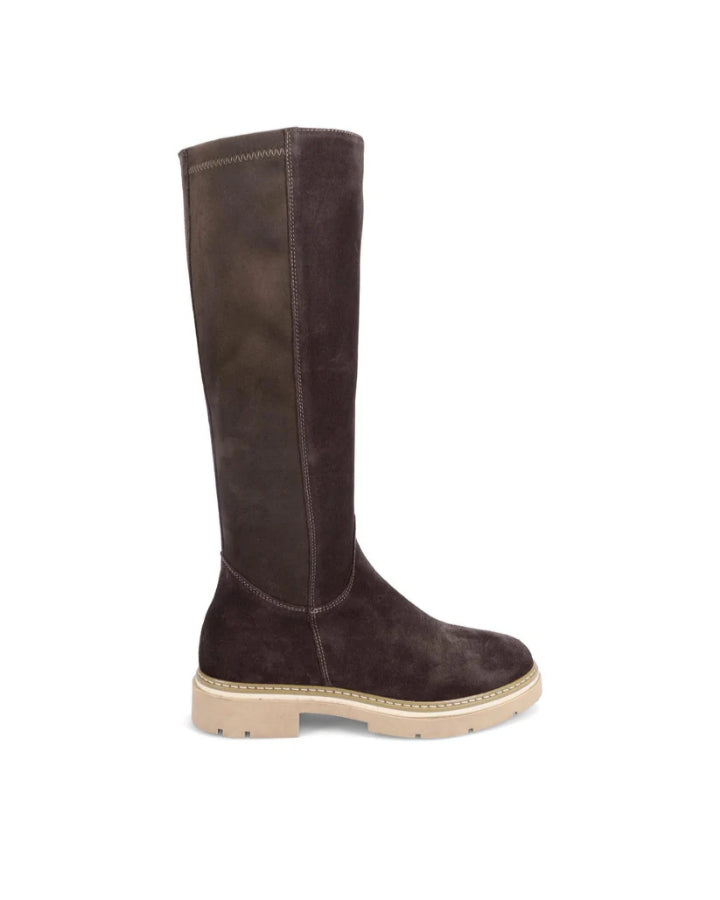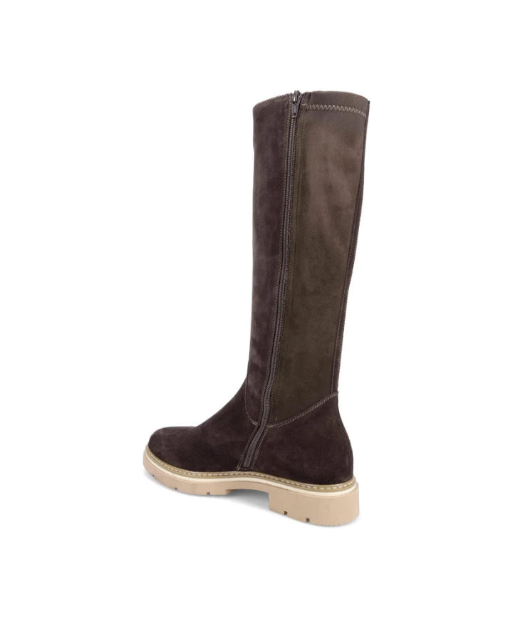 Ron White suede and stretch faux suede tall boot features a full removable footbed with arch support and full length inside zip. Heel 1 1/4" with 3/4" platform, Shaft Height 15", Shaft Circumference 17".