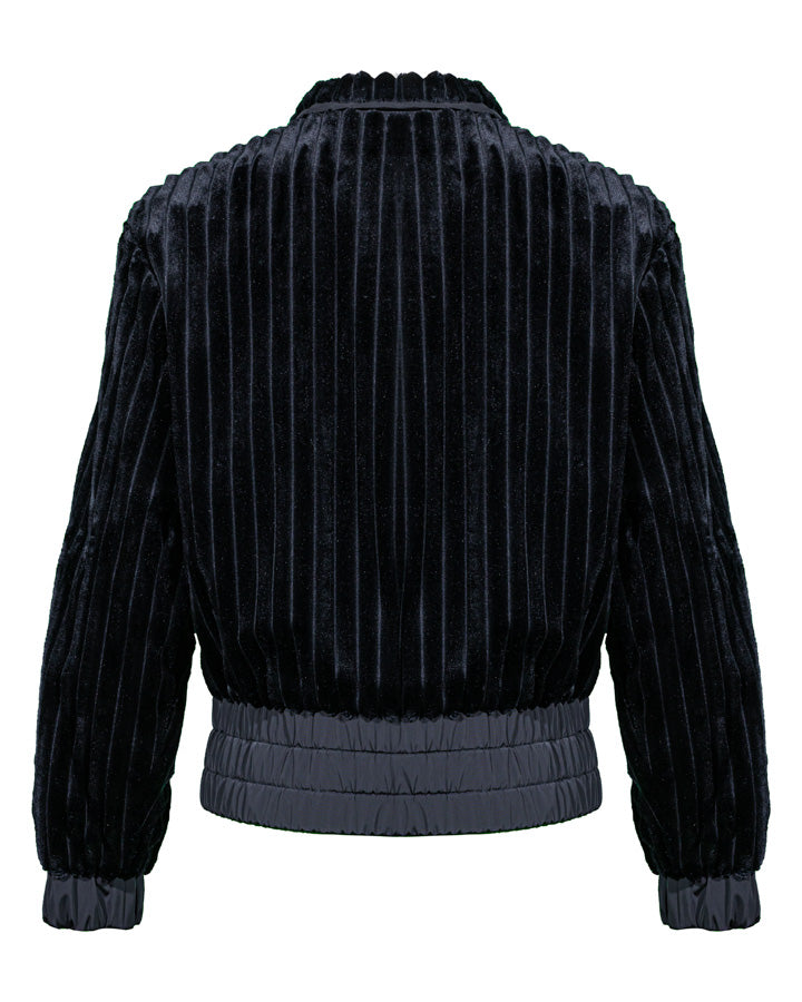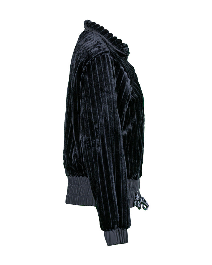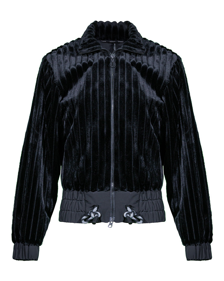 Sportalm Genf jacket with a ribbed look, a full-zip front closure, gathered waist and cuffs, and a tie detail at the bottom.