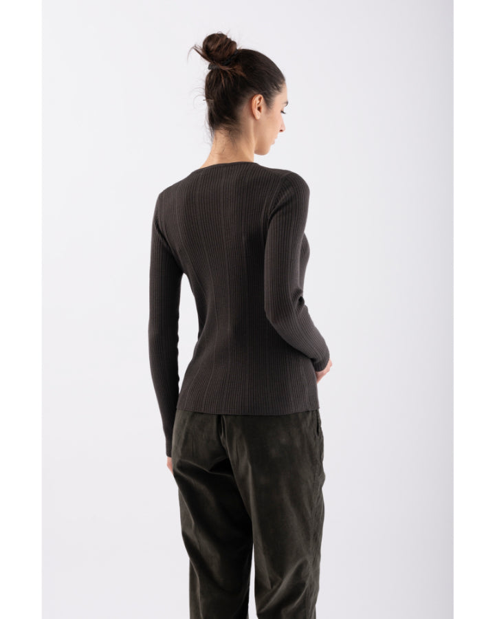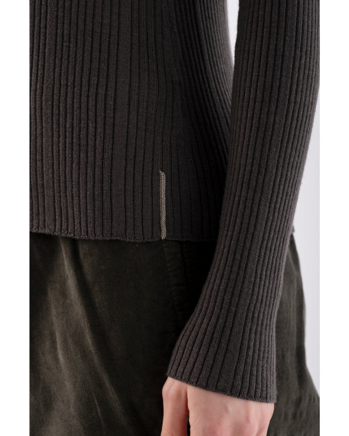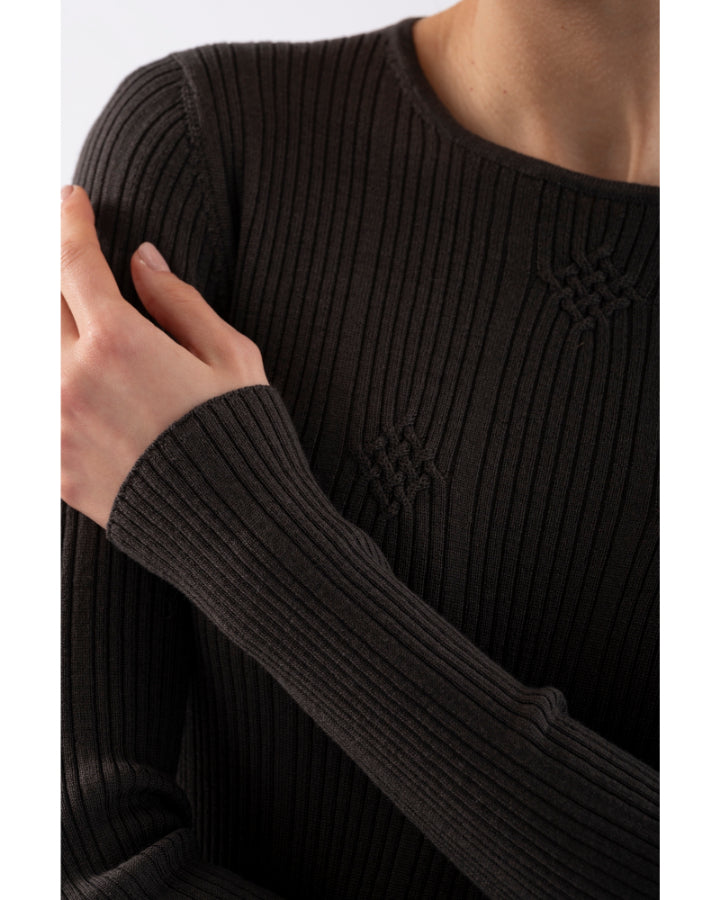 Tonet slim fit merino rib knit sweater with crew neck, long sleeves and patterned details through out.