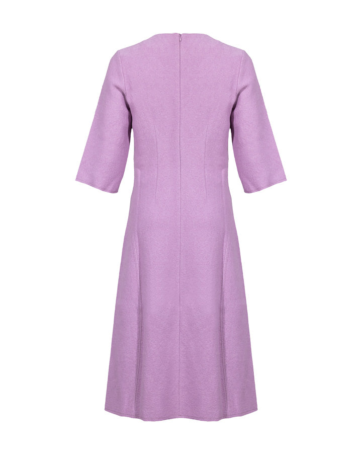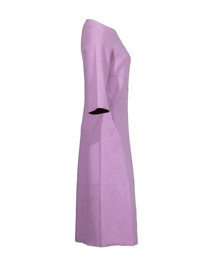 Tonet dress made from quality boiled wool and stitched with structuring throughout the bodice. Features a half-sleeve length and a crew neck opening.