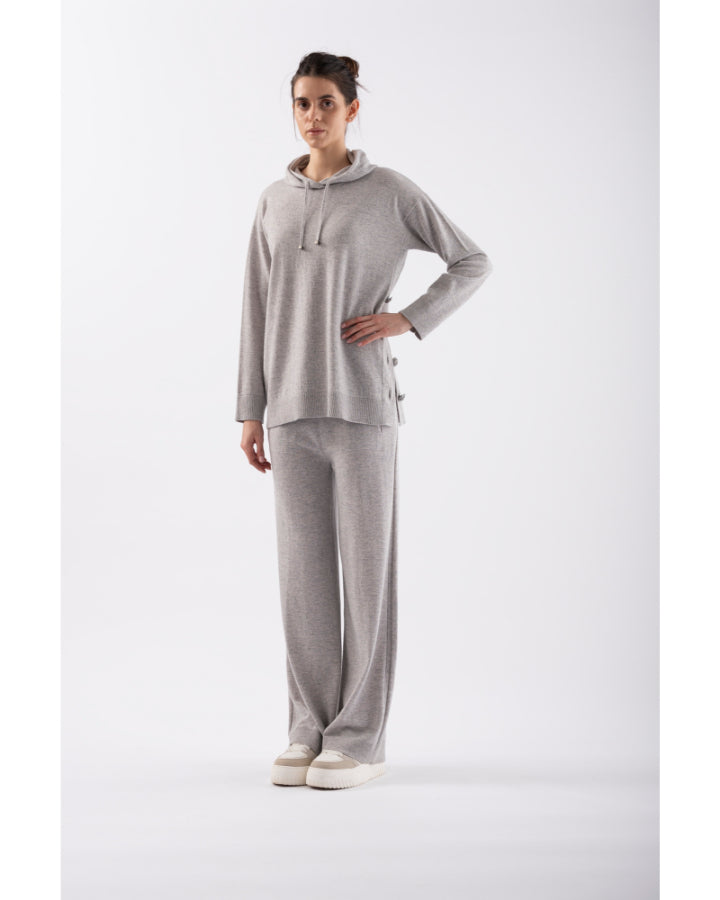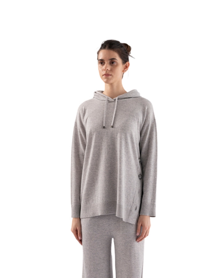 Tonet Hooded Knit Pullover With Button Side