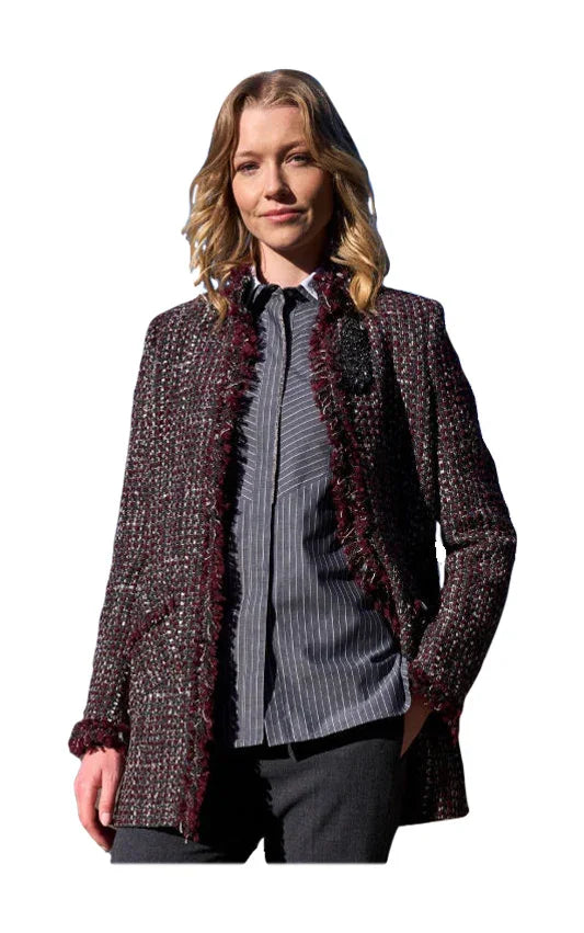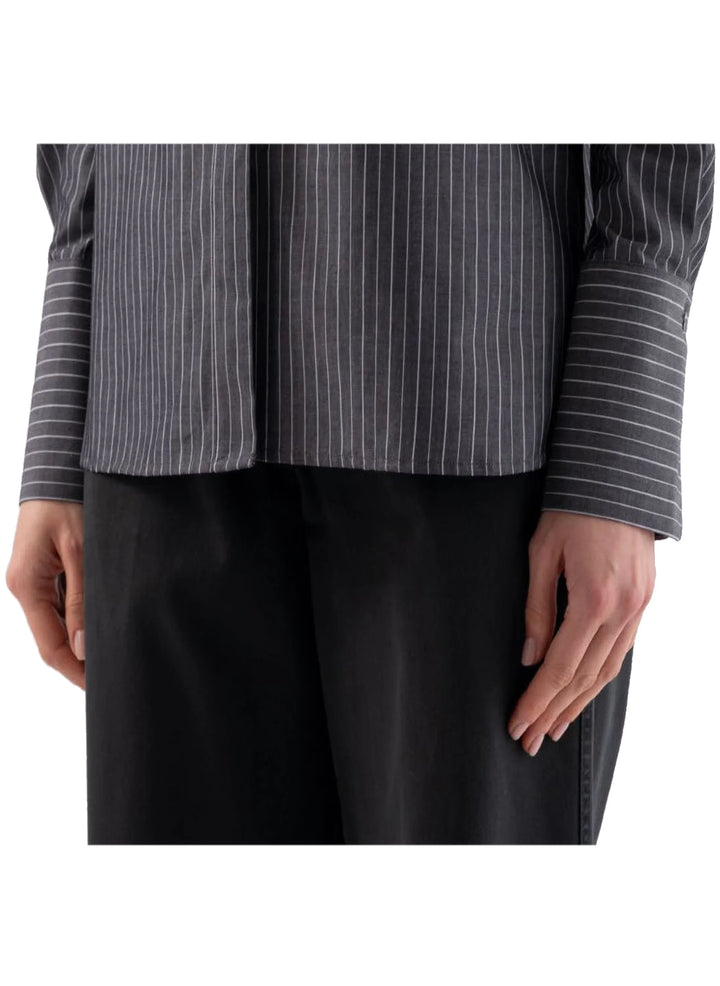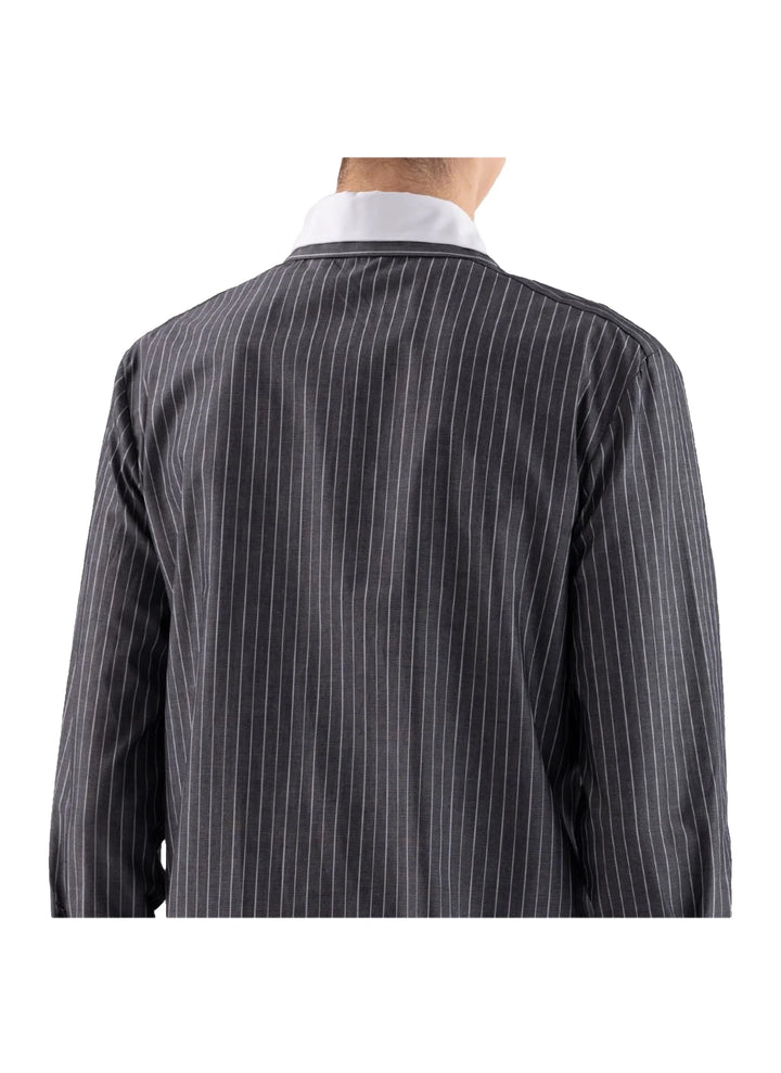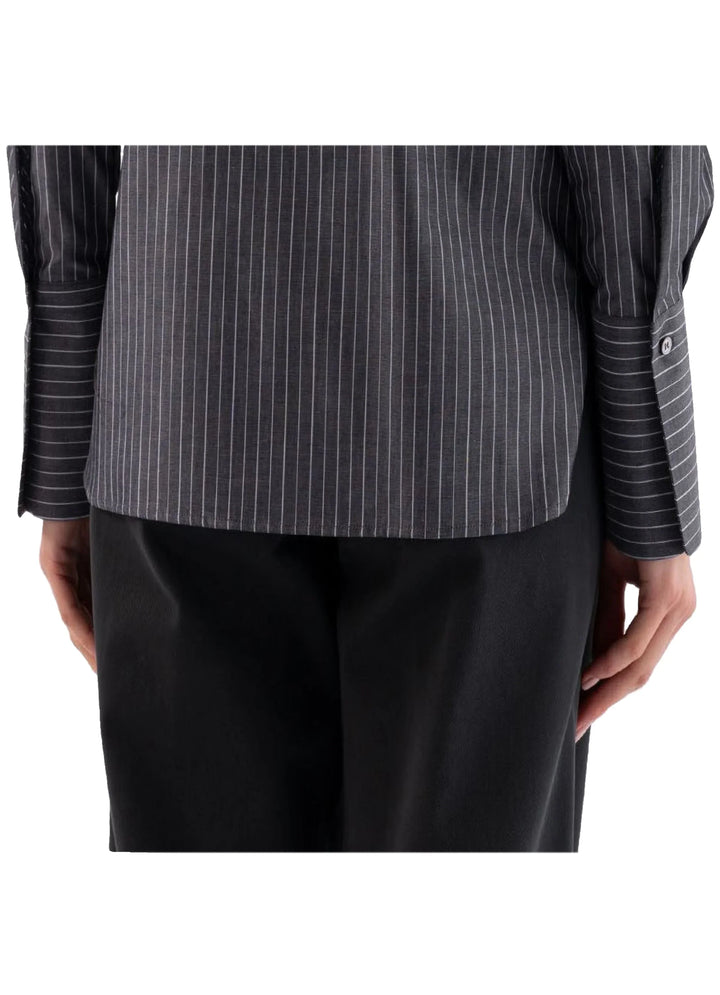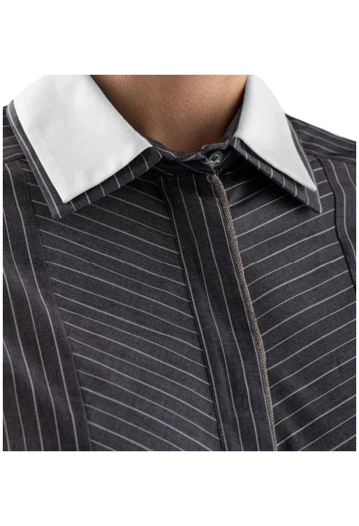 Tonet cotton pinstripe shirt with chest chevron detail, contrast double collar detail, concealed button placket and long cuffs.