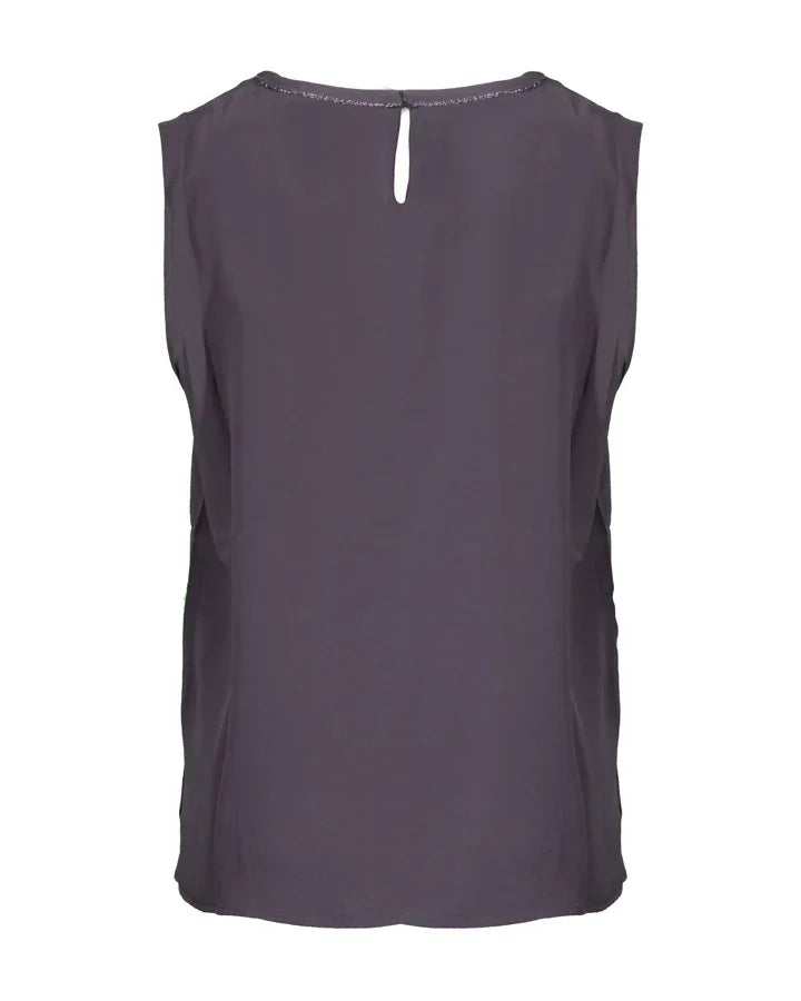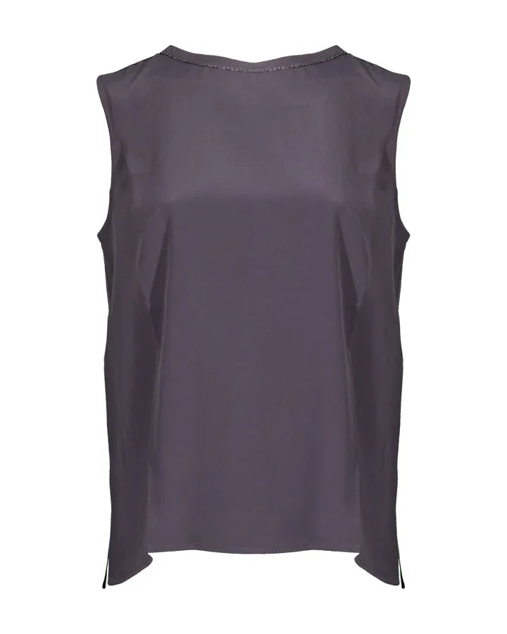 Tonet Sleeveless Silk Shell With Metallic Trim