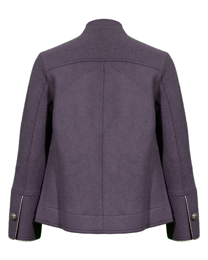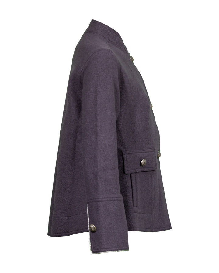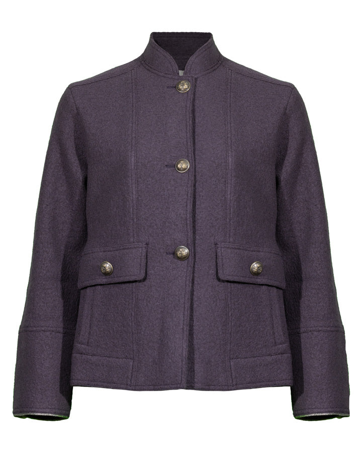 Tonet jacket made from quality boiled wool, stitched in a classic structured jacket design. High neck. Brass buttons go down the front and match on the pockets.