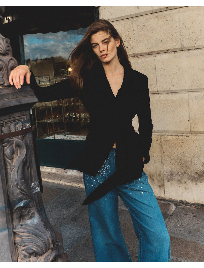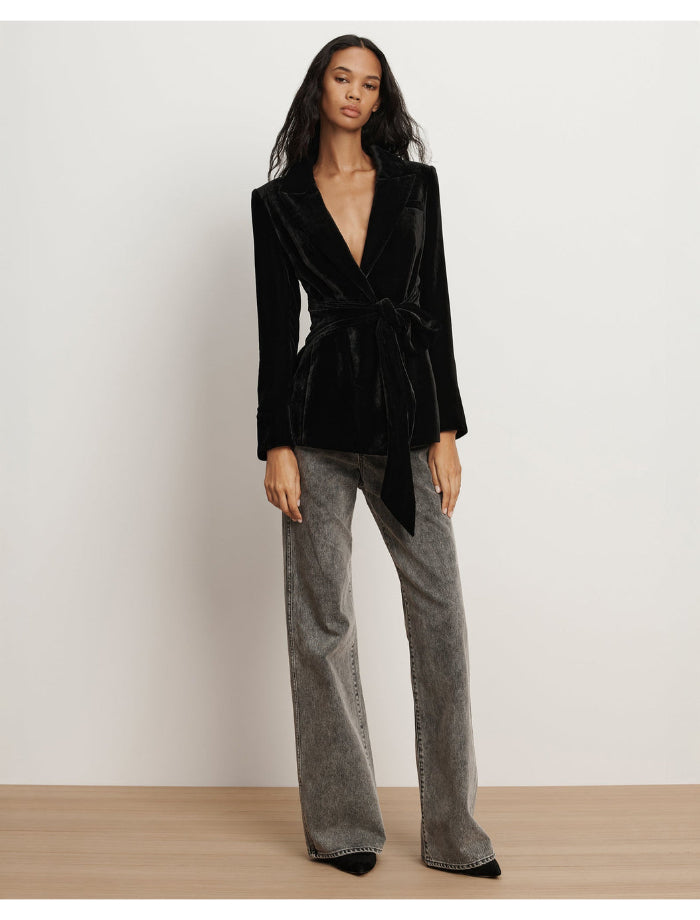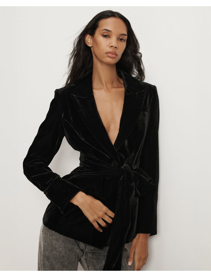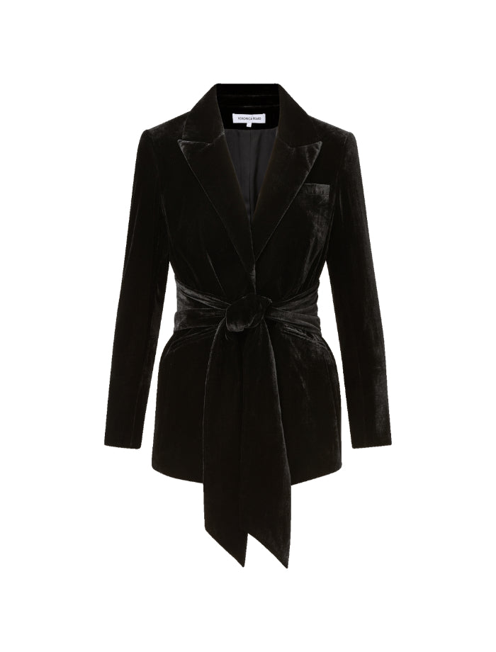 Veronica Beard Issel classic blazer with a modern touch. Features a wrap-style tie for waist definition and an elongated silhouette.