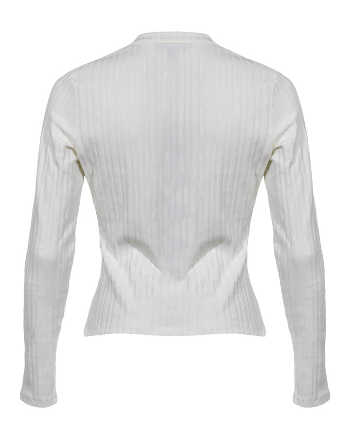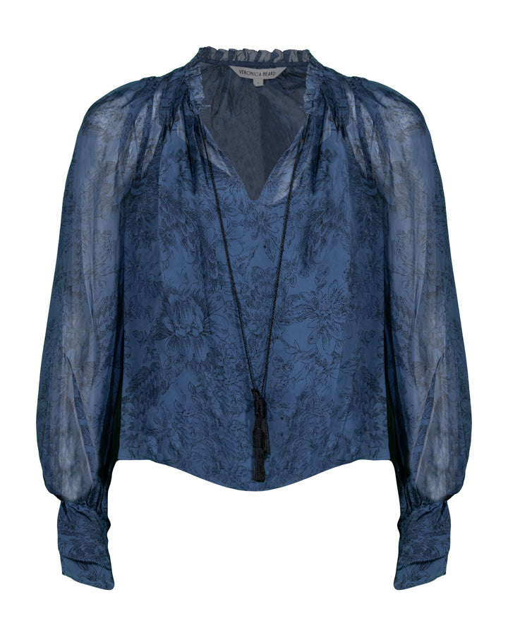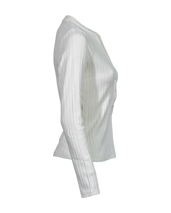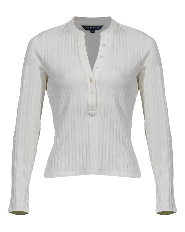 Veronica Beard Jocelyn top with a ribbed textured look and buttons down the front in a henley-inspired elevated closure.