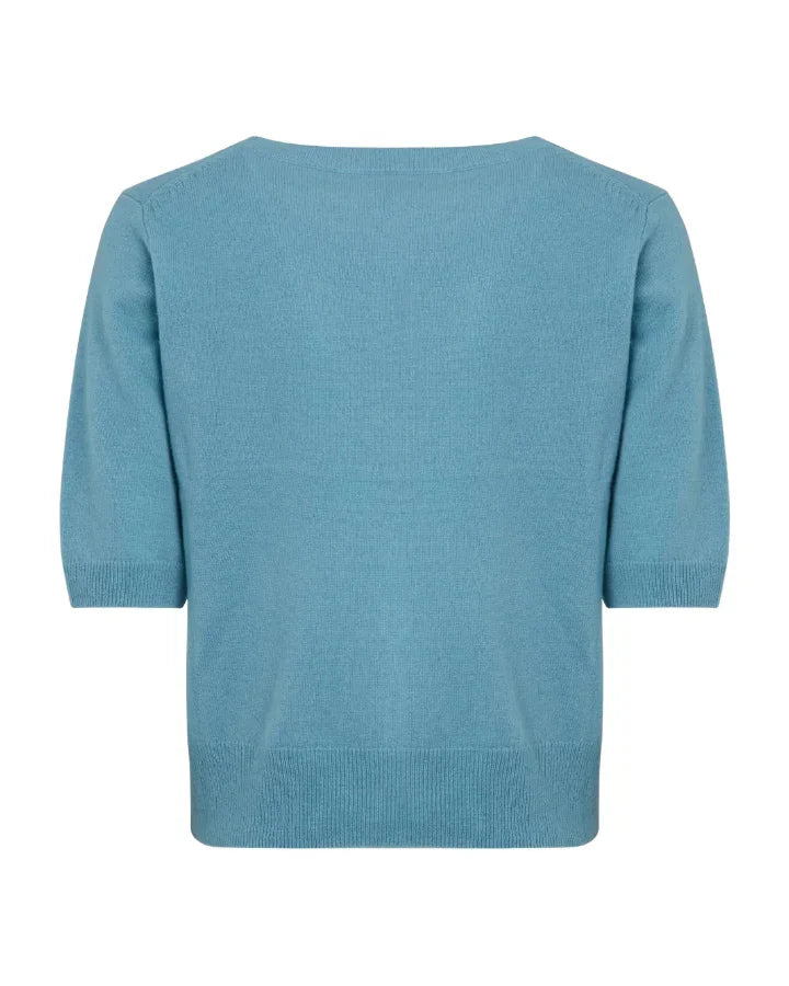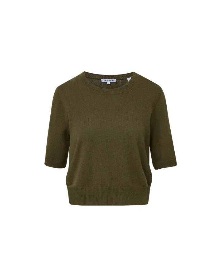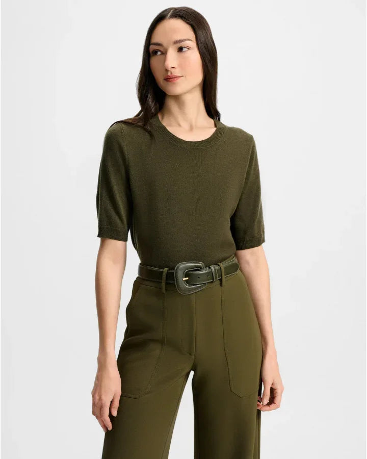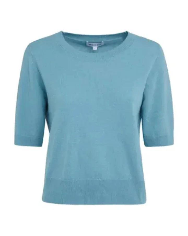 Veronica Beard ultra soft cashmere sweater with elongated short sleeves, crew neck, fine ribbing at collar, cuffs and hem and a slightly cropped body. Size S - Length 20.25", Sleeve Length 18.75".