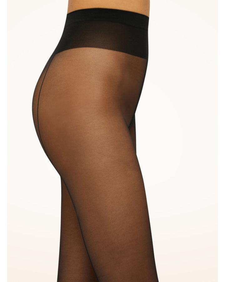 Wolford timelessly feminine, razor-thin tights with a mat look are a true classic with excellent stretch, soft knit logo waistband, shadow reinforced toe, cotton gusset. They always demanded attention with their knitted back seam from the toe to the top. Sensual elegance that never gets old.