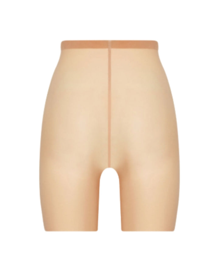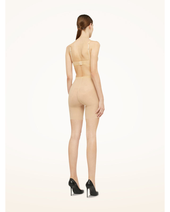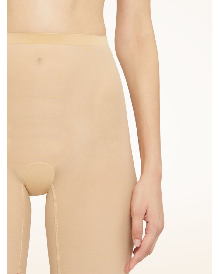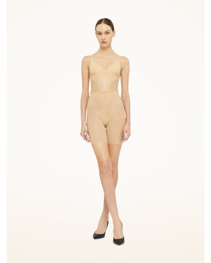Wolford light shaping, nearly invisible, thigh-length panty made from a soft, slightly sheer tulle that seamlessly sculpts the stomach, hips, bottom and thigh areas. The comfortably flat waistband ensures a perfect fit. Cut edges at legs.